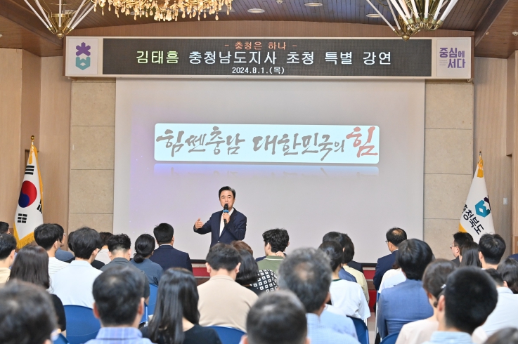 ‘충청은 하나’를 주제로 한 이날 특강에서 김 지사는 먼저 도정 비전을 내놓으며 “충청도가 좋게 이야기하면 양반 기질이 있다고 하는데, 염치나 체면을 중요시하다보니 배고파도 배고프다 못하고, 갖고 싶어도 갖고 싶다 못하며 그동안 다른 시도와의 경쟁에서 손해를 봐왔던 것이 사실”이라고 말했다.