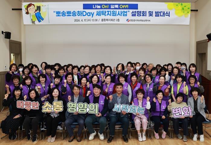 [뉴스서치] 영양군 지역사회보장협의체는 지난 17일 영양군종합복지회관 2층 강당에서 영양군 1호 고향사랑 기금사업인 '나눔ON! 얼룩OFF! 뽀송뽀송하DAY'취약계층 세탁지원사업 발대식을 개최했다.