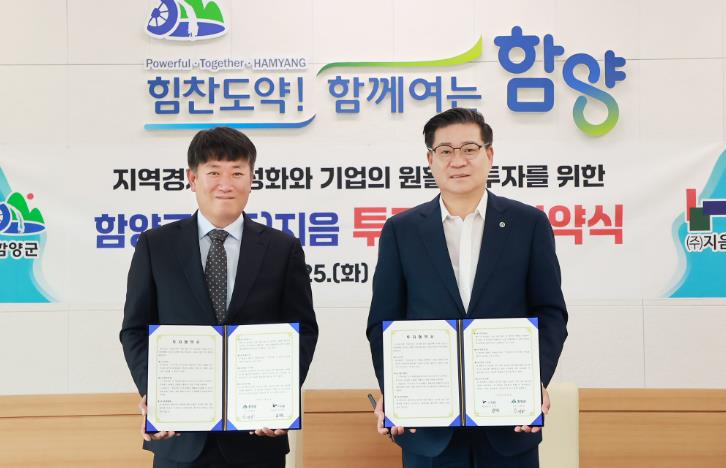 [뉴스서치] 함양군은 6월 25일 ㈜지음과 양자 간 투자유치 협약(MOU)을 체결했다.