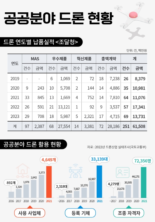 ▲ [인포그래픽] 공공분야 드론 현황 |