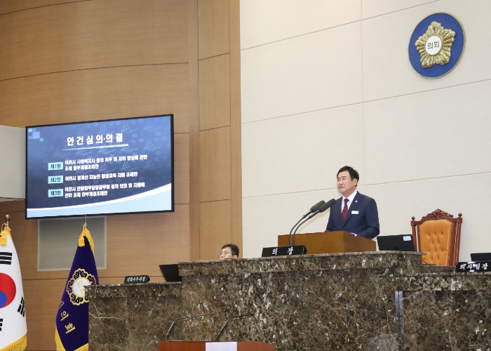 박명서 의장은 “조례안 등의 심사를 위해 애쓰신 의원님들과 원활한 의사진행을 위해 많은 협조를 해 주신 공무원 여러분께 감사드린다”고 전했다.
