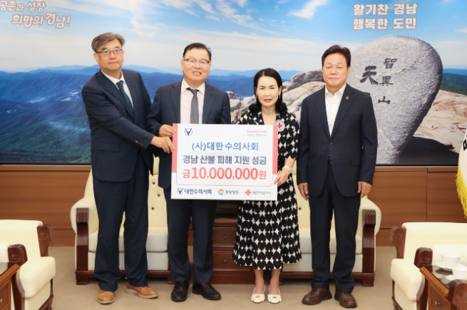성금은 산청·하동 지역에서 발생한 대형 산불 피해 복구를 위해 대한수의사회 회원들이 자발적으로 모금한 것으로, 대한적십자사 경남지사를 통해 피해 지역 복구와 주민 생활 안정 지원에 사용될 예정이다.