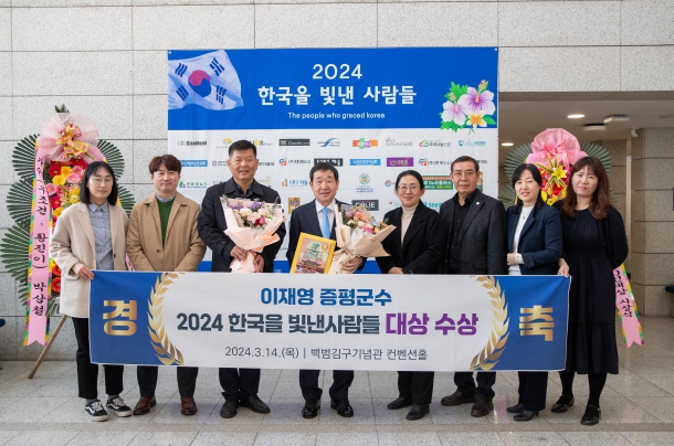 [뉴스서치] 이재영 증평군수가 14일 백범김구기념관 컨벤션홀에서 열린 ‘2024 한국을 빛낸 사람들’ 시상식에서 행정공직분야 대상을 수상했다.