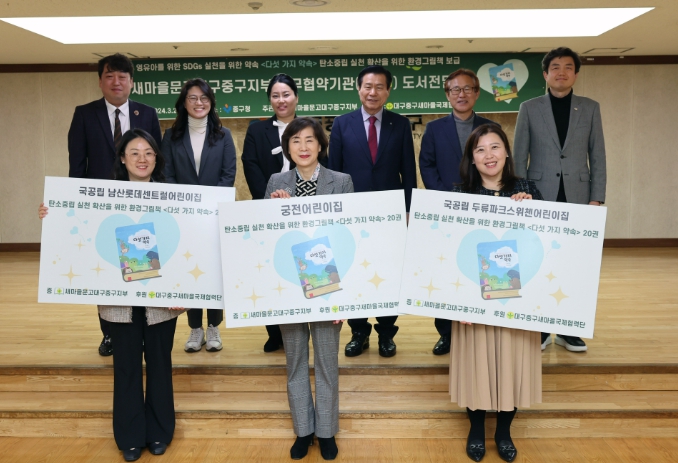 [뉴스서치] 새마을문고 대구중구지부는 26일 중구청 대강당에서 탄소중립 관련 도서 100여 권을 업무 협약 어린이집 3개소에 전달했다.