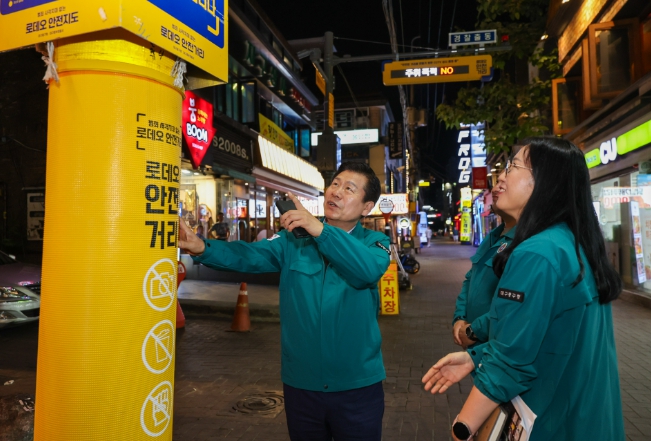 또, CCTV 안전시설물 설치 시인성을 높이기 위한 부분 도색은 13개소 완료하고, CCTV 설치 안내 사인물 26개 설치, 태양광 도로 바닥표지병 100개를 설치했다. 그리고 부착물 방지커버를 장착하고 지저분했던 가로환경도 정비하는 등 보행길 환경도 개선했다.