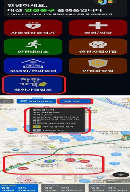 ▲ 대전 중구, 안전중구플랫폼에 착한가격업소 정보 추가 |