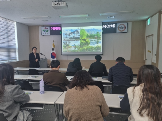 이번 교육은 지난 2월 20일 1차 정원분야 전문성 향상 교육의 후속과정으로, 경남도립거창대학교 산학중점교수이자 스마트 귀농귀촌학부 강사로 재직 중인 장은진 강사를 초빙해 정원 식물 관리 방법과 국가정원 사례 연구에 대한 강의를 진행했다.