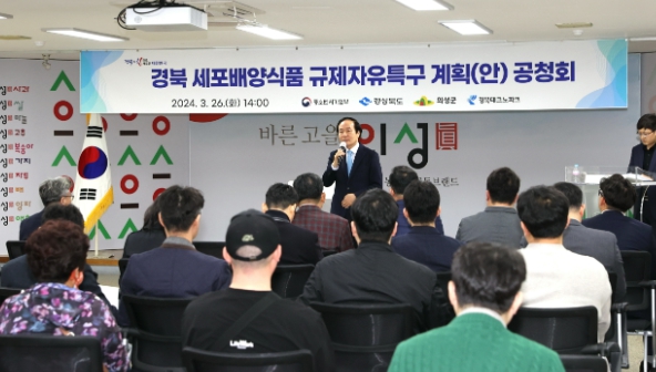 [뉴스서치] 의성군은 경상북도와 함께 3월 26일(화) 군청 대회의실에서 세포배양식품 규제자유특구 지정신청을 위한 사전 행정절차로서 세포배양식품 규제자유특구 공청회를 개최했다고 밝혔다.