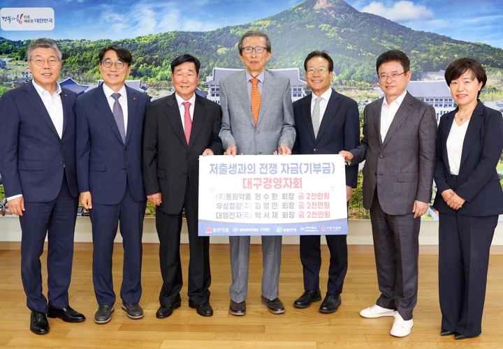 [뉴스서치] 대구경영자회 회장단은 7일 경북도청에서 저출생 극복 성금 6,000만원을 사회복지공동모금회를 통해 경북도에 전달했다.