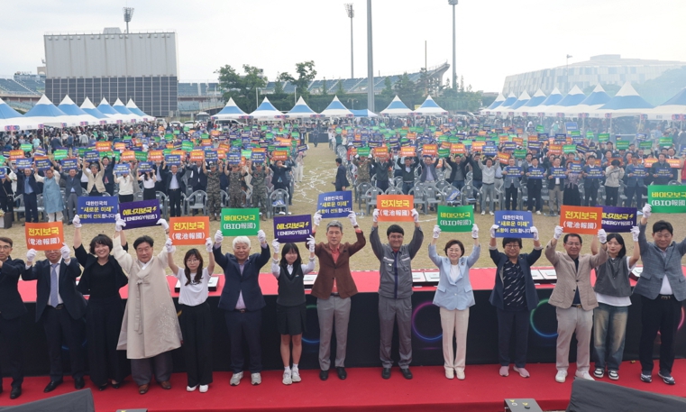 ‘포항의 새로운 미래는 시민과 함께’란 구호로 시작된 퍼포먼스는 전지보국, 바이오보국, 에너지보국 등 포항시가 역점 추진하고 있는 신산업에 대한 시민들의 염원을 담아냈다.