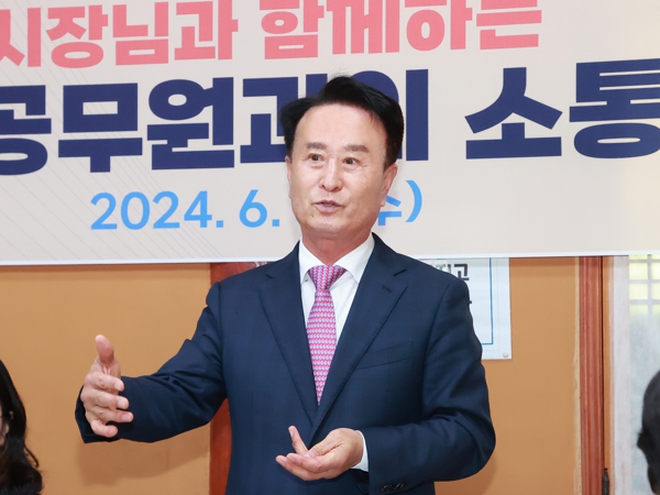 박 시장은 5일 관내 식당에서 민원창구 담당 공무원의 고충을 이해하고 공감 및 격려를 위해 ‘시장과 함께하는 소통간담회’를 가졌다.
