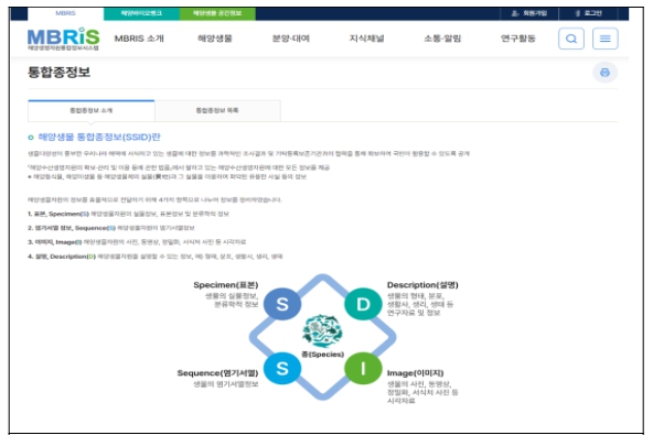 | ▲ 해양생명자원 통합종정보(SSID) 서비스 |