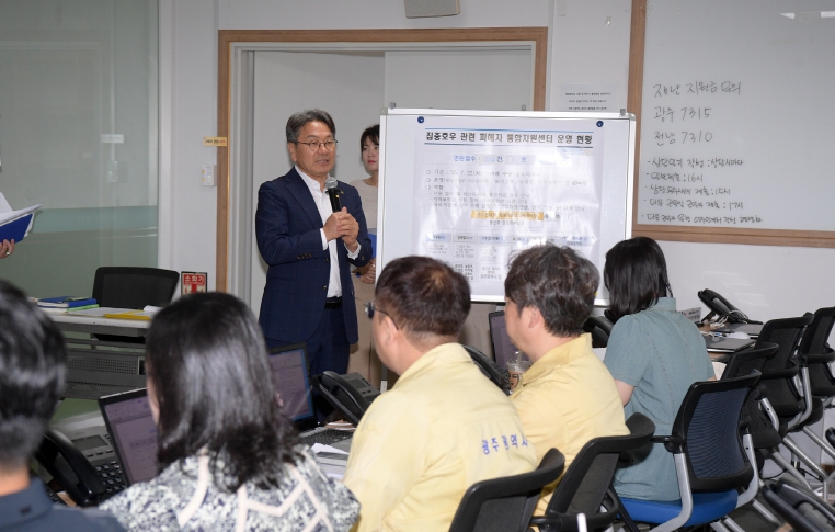 센터는 피해 수습 종료 때까지 매일 오전 9시부터 오후 6시까지 운영하며, 광주시 누리집(홈페이지) 또는 120 콜센터를 통해 담당자를 확인한 후 방문 또는 전화 상담이 가능하다.