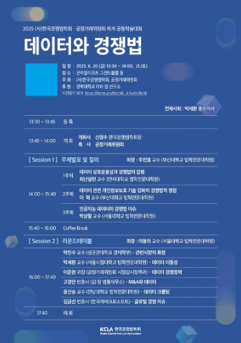 [뉴스서치] 공정거래위원회는 오늘 한국경쟁법학회와 함께 ‘데이터와 경쟁법’을 주제로 하계 공동학술대회를 개최했다.