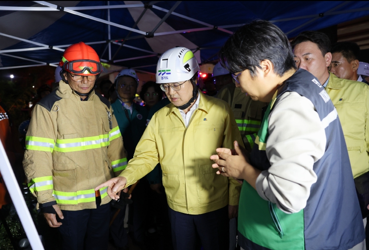 앞서 김 지사는 16일 밤 오산시 가장동 가장교차로에서 발생한 옹벽 붕괴 사고 현장을 찾아 행정1부지사와 소방재난본부장에게 “도내 비슷한 옹벽이나 유사한 도로, 구조물이 있는지 신속하게 조사하고 조치해달라”면서 “모레 아침까지 비가 많이 온다고 하니 내일이라도 빨리 시군하고 급한 곳부터 빨리 전수조사를 해서 사고를 예방하자”고 지시했다.