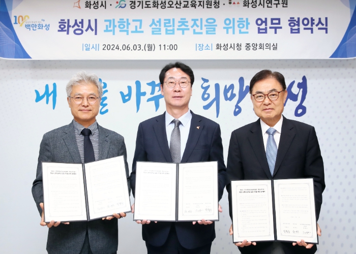 [뉴스서치] 화성시가 3일 시청 중앙회의실에서 화성오산교육지원청·화성시연구원과 ‘과학고 설립 추진을 위한 업무협약’을 체결했다.