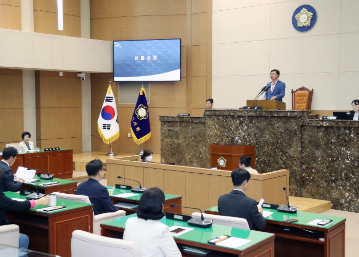 김하식 의장은 개회사를 통해 “이번 정례회에서 진행되는 행정사무감사는 한 해의 시정 전반을 돌아보는 중요한 활동인 만큼 시정 전반에 대해 꼼꼼한 감사를 펼쳐주시기 바란다”며 “내실 있는 행정사무감사가 될 수 있도록 집행부에서는 충실한 자료 준비와 성실한 답변으로, 동료 의원님들께서는 건설적인 정책 대안을 제시해달라”고 당부했다.