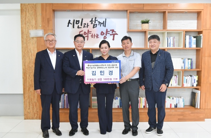 이날 성금 전달식 직후, 양주시의 위상을 높이고 이웃사랑을 실천한 김민경 씨에게 시정발전 유공 표창 수여식을 진행했다.