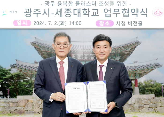 [뉴스서치] 광주시는 2일 시청 6층 비전홀에서 세종대학교와 융복합 클러스터 조성사업을 위한 업무협약(MOU)을 체결했다.