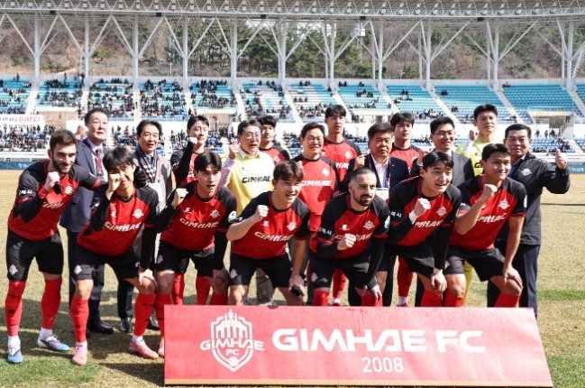 [뉴스서치] 경상남도는 28일 오후 김해종합운동장에서 열린 김해FC와 안산 그리너스의 홈 개막전을 찾아 김해FC의 프로리그 첫 공식 데뷔전을 축하하고 선수단을 격려했다.
