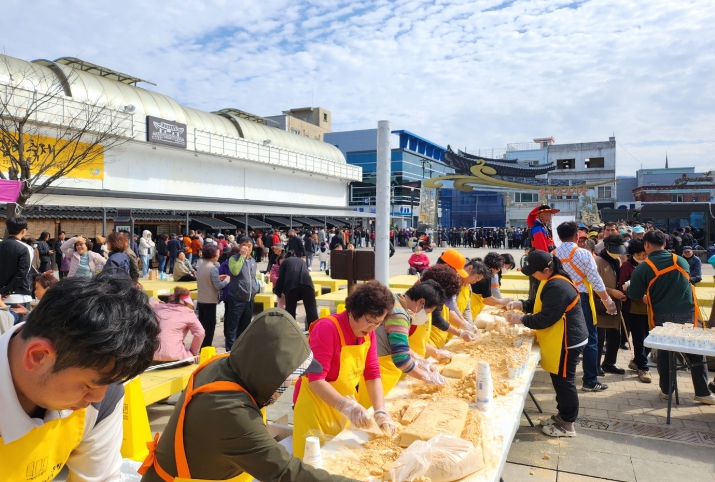 공주시가 주최하고 공주산성상권활성화사업단·사백년 인절미 축제위원회가 주관한 이번 행사에는 따뜻한 봄날, 가족과 함께 인절미의 매력을 즐기려는 관람객이 5만 명 이상 몰리며 산성시장 개설 이후 최대 인파가 운집했다.