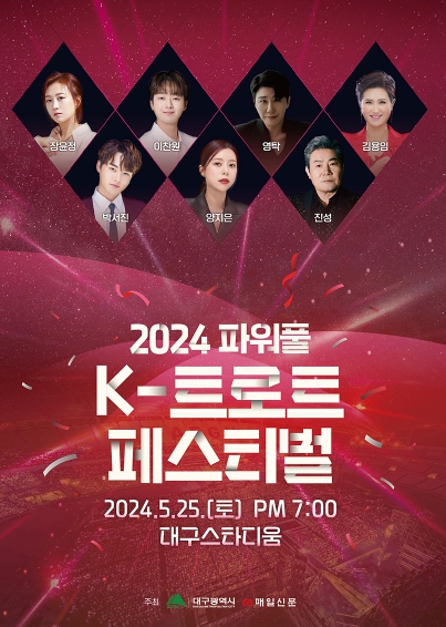 [뉴스서치] ‘2024 파워풀 K-트로트 페스티벌’이 5월 25일 저녁 7시 대구스타디움 주경기장에서 열린다.