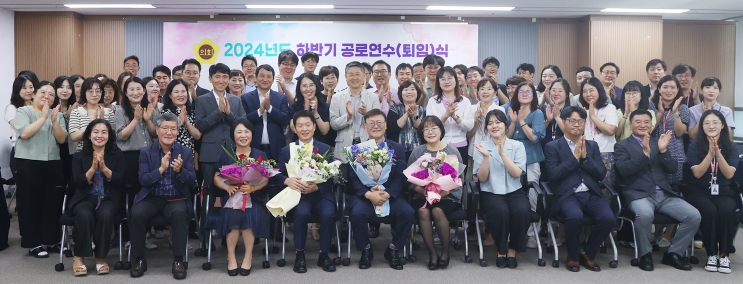 연수식은 연수자 공로패 수여를 시작으로 환송사, 퇴임 소회 발표, 동영상 시청, 직원과의 대화 등의 순서로 진행됐으며 공로연수자와 가족, 공무원 등 100여 명이 참석했다.