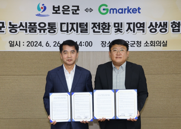 [뉴스서치] 보은군은 26일 군정 소회의실에서 지마켓과 ‘농식품유통 디지털 전환 및 공동브랜드 육성’을 위한 업무협약을 체결했다.