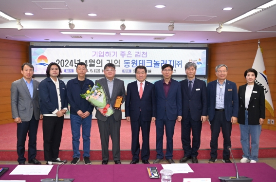 [뉴스서치] 김천시는 4월 이달의 기업으로 동원테크놀러지㈜를 선정하고 지난 5일 김천시청에서 선정패 전달식 및 회사기 게양식을 했다.