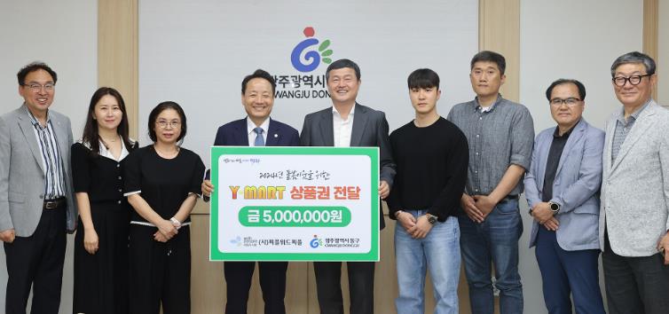 [뉴스서치] 광주 동구는 22일 와이마트 부설 사단법인 피플위드피플(이사장 김성진)에서 구청을 방문해 돌봄 이웃 지원을 위한 와이마트 상품권 5백만 원을 전달했다고 밝혔다.