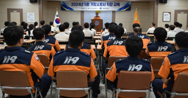 [뉴스서치] 거창소방서는 29일 소방공무원 약 100여 명이 참석한 가운데 3층 대회의실에서 '24년도 상반기 직장교육을 실시했다고 밝혔다.