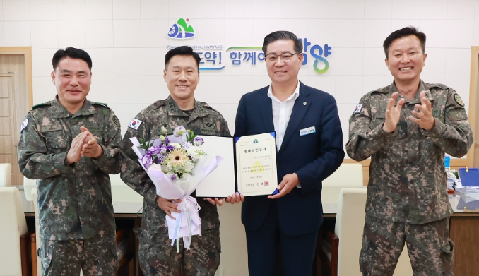 이날 함양군 명예군민증을 수여받은 주인공은 2022년 11월부터 현재까지 39보병사단 118여단장으로 훌륭하게 임무를 수행 중인 박시영 대령이다.