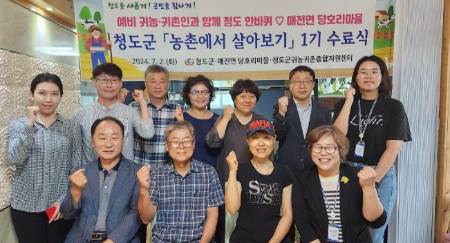 [뉴스서치] 청도군은 지난 2일 매전면 당호리마을에서 귀농귀촌을 희망하는 도시민들을 대상으로 ‘농촌에서 살아보기’ 프로그램 1기 수료식을 개최하였다.