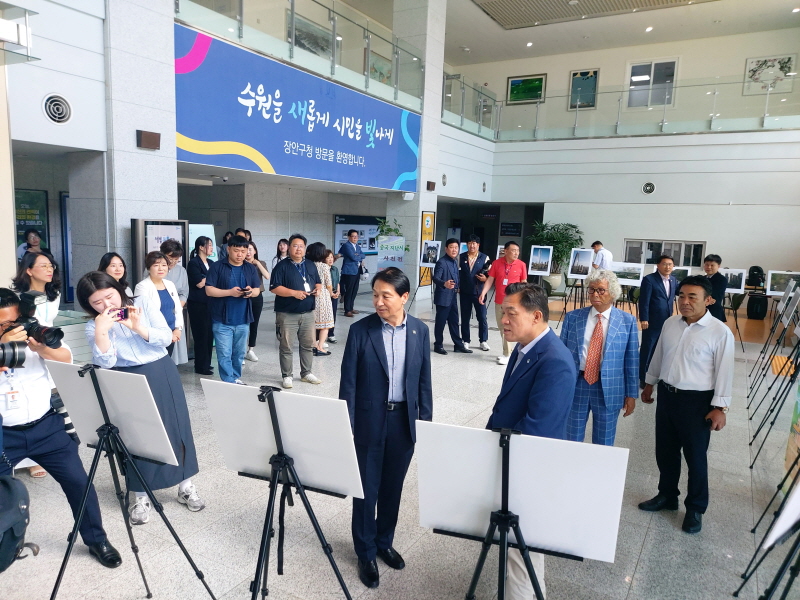 이재준 수원시장은 이날 오전 수원시 장안구청 1층 로비에서 개최된 ‘중국 지난시 사진전’에 들러 수원시의 우호 도시인 지난시에 대해 “(수원시와)자매 도시인데 가장 중국에서 역동적인 도시 같다”며 “인구 천만에 큰 도시이지만 또 역동적인 도시라서 제가 방문하고 나서 깜짝 놀랐다”고 우선 운을 뗐다.