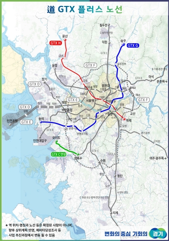 광명시에 따르면 경기도는 1일 김동연 경기도지사의 핵심 교통공약인 GTX플러스 노선안을 발표했다. 신설 2개 노선(GTX G, H)과 연장 1개 노선(GTX-C 오이도 연장) 등 3개 노선 총 연장 162km에 사업비 12조 2천692억 원을 투입하는 내용이다.