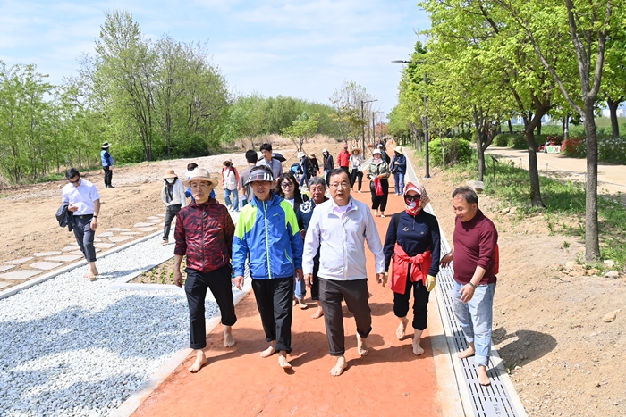 이현재 시장은 이 과정에서 모랫길과 황톳길을 맨발걷기협회(회장 김범준)와 함께 방문해 추가로 보완해야 할 사항을 체크하는 등 시민의 눈높이에서 맨발 걷기길을 점검했다.