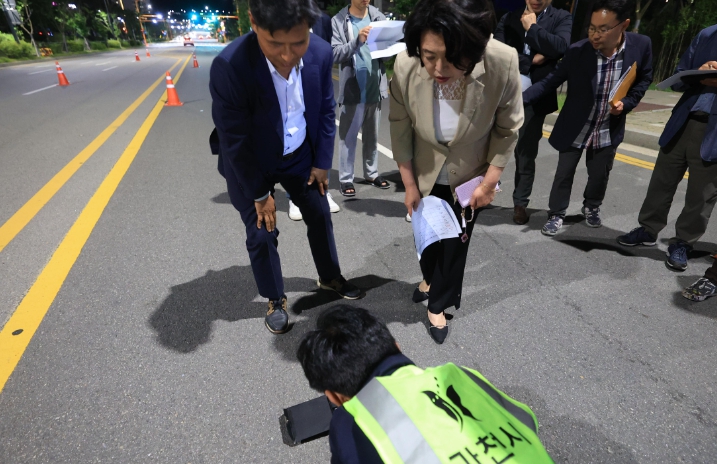 ▲ 신계용 과천시장, 지정타 도로조명 조도 측정 참관 |