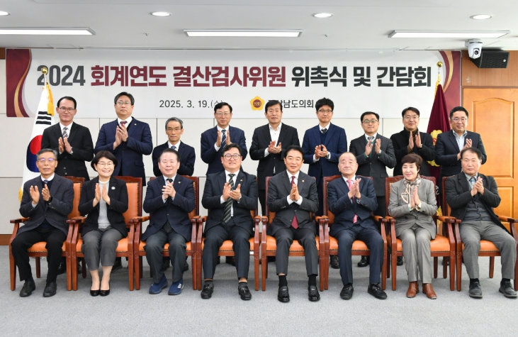 [뉴스서치] 경상남도의회 최학범 의장은 19일 경상남도의회 의정회의실에서 ‘2024회계연도 결산검사위원’에게 위촉장을 수여했다.