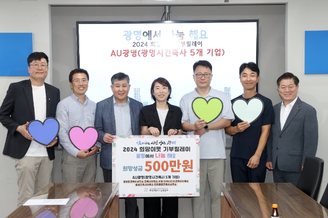[뉴스서치] 광명시사회복지협의회가 6일 광명시청 영상회의실에서 광명희망나기운동사업의 ‘2024 희망이웃 기부릴레이’ 희망성금 전달식을 개최해 AU광명(광명을 사랑하며 밝게 만드는 모임)이 성금 500만 원을 전달했다.