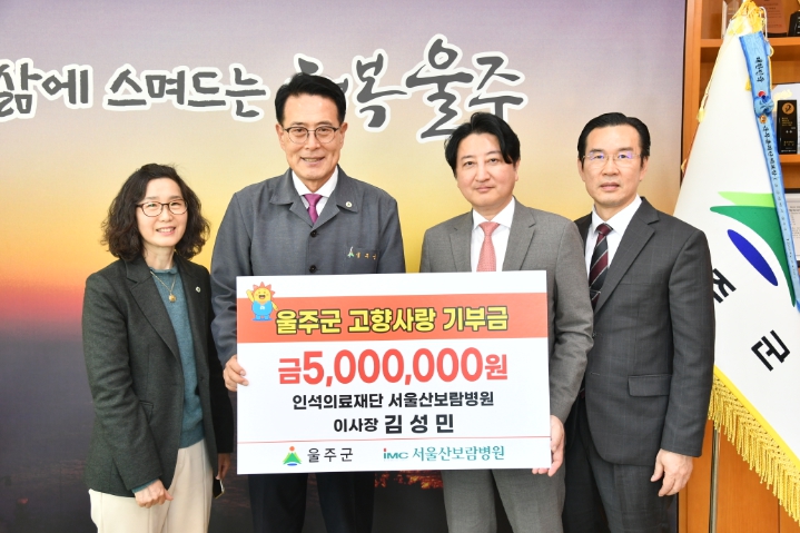 [뉴스서치] 인석의료재단 서울산보람병원 김성민 이사장이 1일 울주군에 고향사랑기부금 연간 최고 기부액인 500만원을 기탁했다.