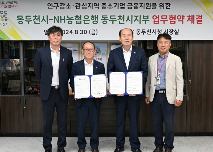 [뉴스서치] 동두천시는 30일, NH농협은행 동두천시지부와 인구감소·관심 지역의 중소기업을 지원하는 특례보증 금융 지원 업무협약을 체결했다.
