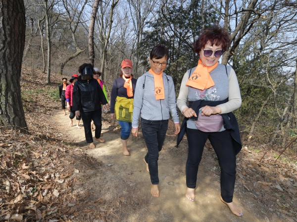 [뉴스서치] 김이강 서구청장은 23일 오전 서구 맨발걷기 주민동호회 회원들과 함께 금당산 맨발로 2구간을 걸으며 맨발로 조성에 대한 의견을 청취했다.