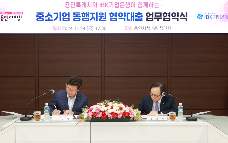 [뉴스서치] 용인특례시는 24일 오후 시청 접견실에서 IBK기업은행과 관내 중소기업에 최대 2억원의 운영자금 대출을 돕는 ‘중소기업 동행지원’ 업무협약을 체결했다고 25일 밝혔다.