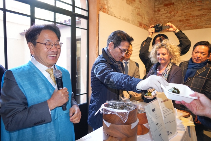 [뉴스서치] 광주광역시는 18일(현지시간) 이탈리아 베니스에서 광주비엔날레 창설 30주년 기념 아카이브 전시를 개막했다.
