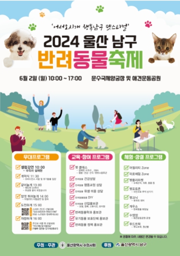 [뉴스서치] 울산 남구는 오는 6월 2일 문수국제양궁장과 애견운동공원 일대에서 반려동물 축제를 개최한다고 밝혔다.