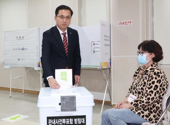 [뉴스서치] 박희조 대전 동구청장이 제22대 국회의원 선거 사전투표 첫날인 5일 동구 대청동 다목적회관에 마련된 사전투표소에서 사전투표에 참여했다.
