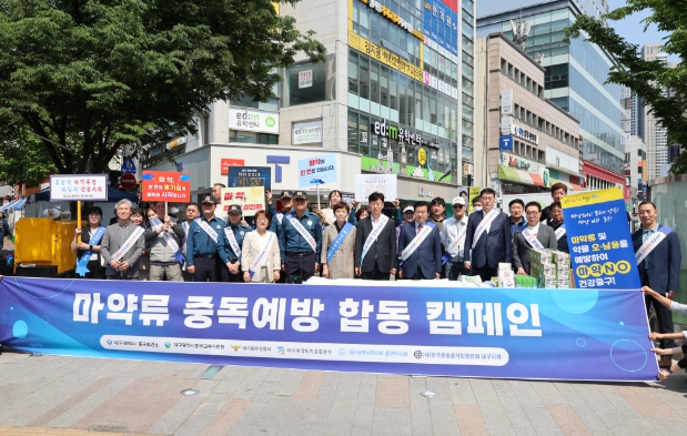 이번 캠페인에는 지난해 10월과 올해 3월 마약류 중독예방 안전망구축을 위해 업무협약을 체결한 대구중부경찰서, 대구마약퇴치운동본부, 대구시중구약사회, (사)한국유흥음식업대구시지회, 대구광역시 동부교육지원청이 참여했다.