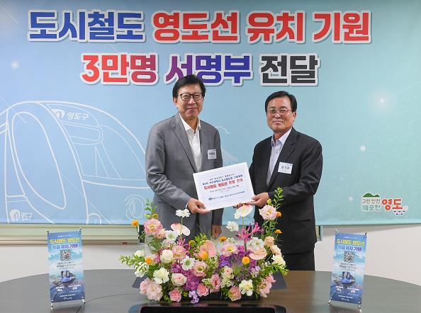 ▲ 영도구, 교통불편 해소 위한 도시철도 영도선 유치 기원 3만명 서명부 전달 |