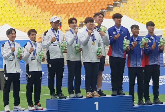 ▲ 부산 사상구청 양궁팀 김하준 선수, 2024 아시아컵 3차 대회 3관왕 달성