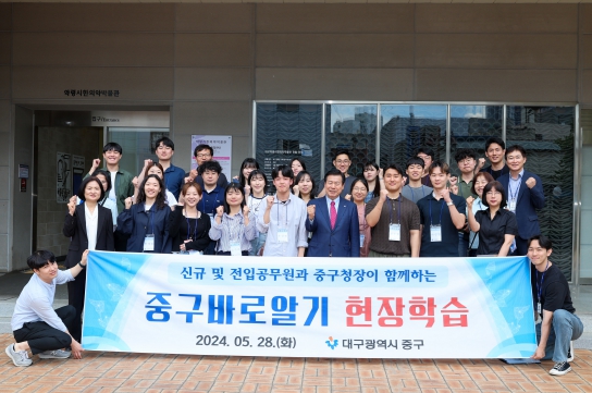 [뉴스서치] 대구 중구는 28일 공직에 첫발을 내딛는 새내기 공무원과전입 공무원 24명을 대상으로 ‘중구 바로 알기 현장학습’을 실시했다.